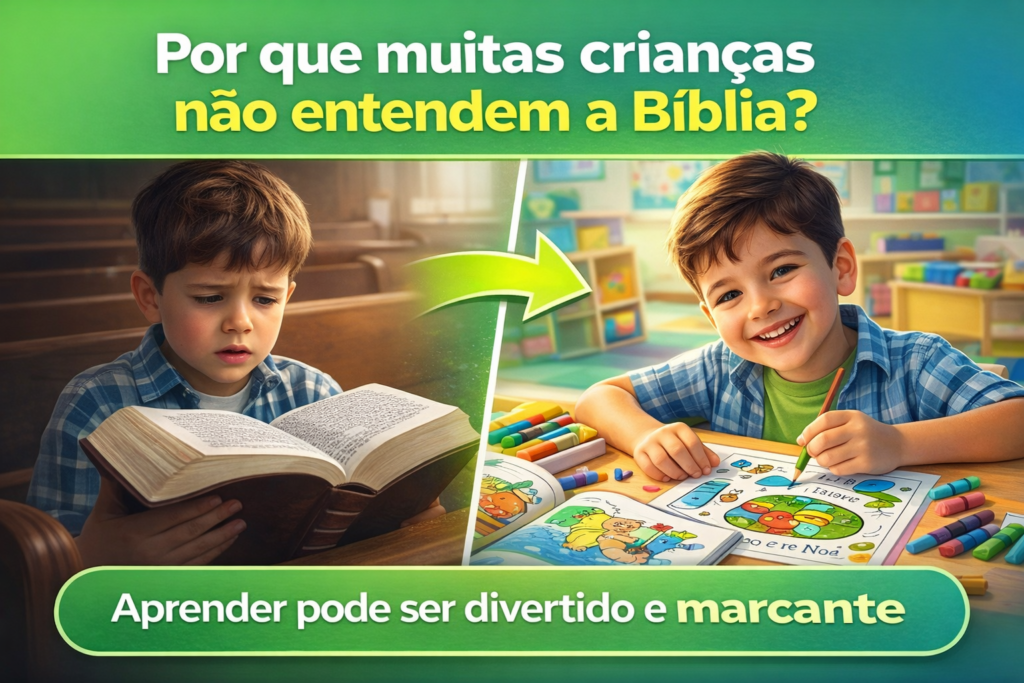 Ao longo desse tempo percebi que muitas crianças frequentam a igreja, mas têm dificuldade de compreender a Bíblia de forma clara e participativa.